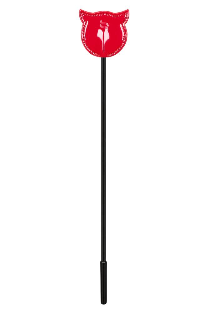 Эта шлепалка может стать прекрасным дополнением к сексуальной игре. Она выполнена в виде головы чертика с рожками из ярко-красной ткани под лак, украшенной логотипом производителя. Шлепалкой можно сделать больно и тут же охладить место удара — ткань с эффектом лакэ успокоит кожу. Партнера можно гладить и щекотать, а можно перевернуть шлепалку обратной стороной и делать все то же самое, но только пластиковым стиком. Эффект будет более направленным и сильным.